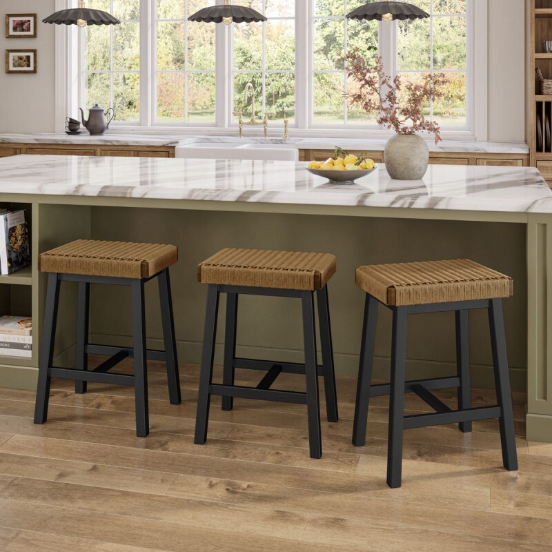 If you’re looking for a stool that combines functionality, simplicity, and style for your kitchen or bar, the Miranda stool is the perfect choice. The handwoven Danish cord seat will add a touch of warmth to your décor, while its sturdy metal base ensures long-lasting durability with a touch of rustic charm. The backless design of the stool makes it easy to slide under the counter, freeing up space for other activities.