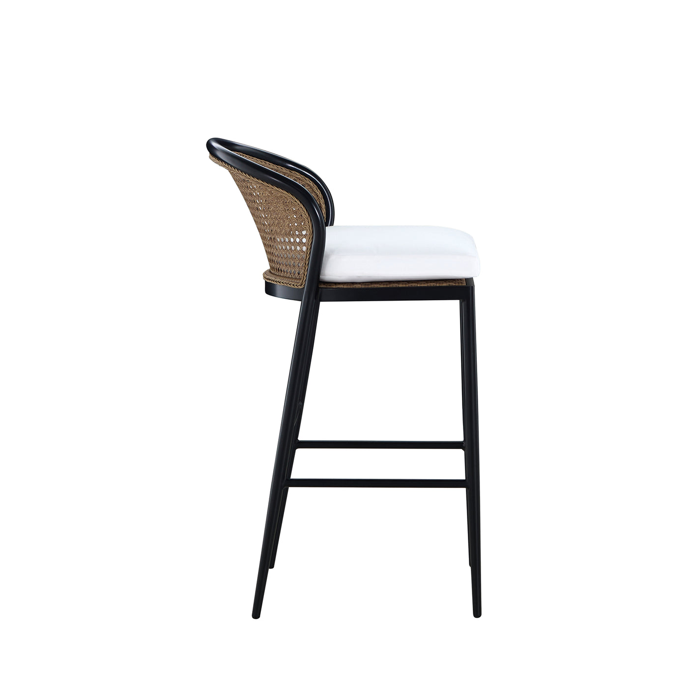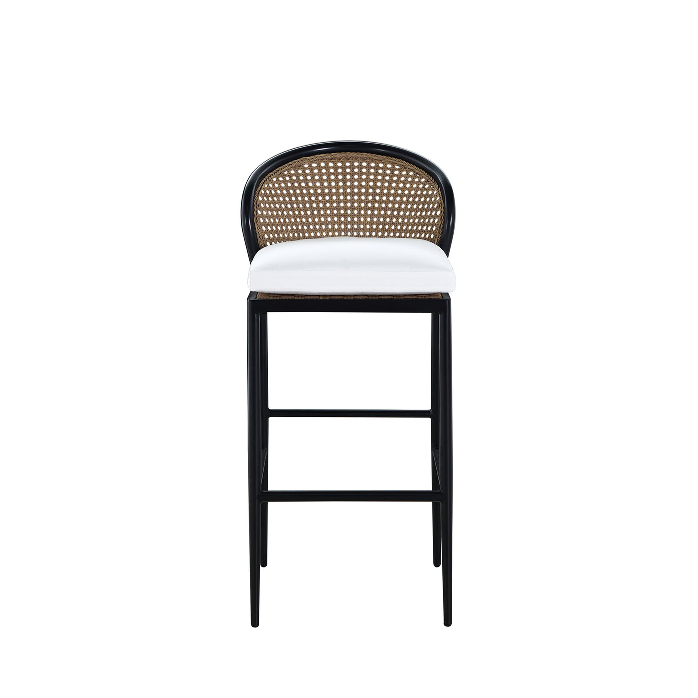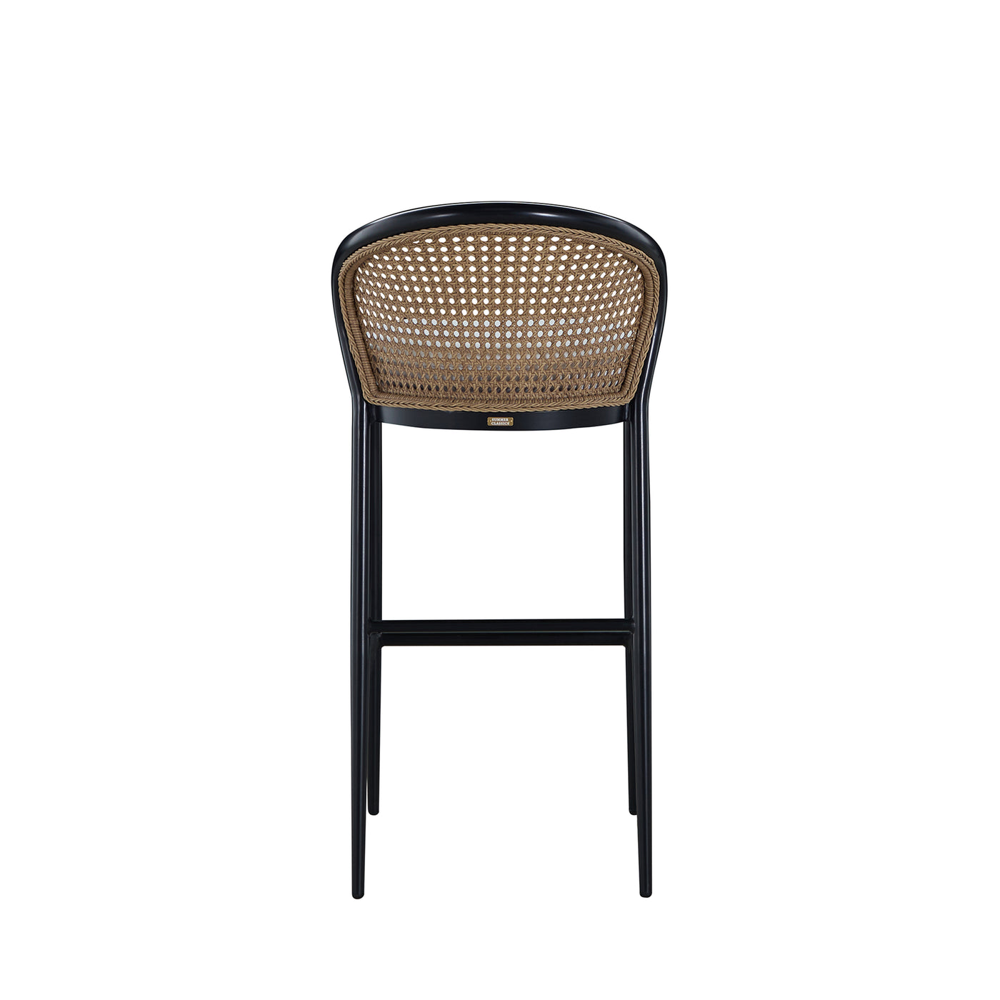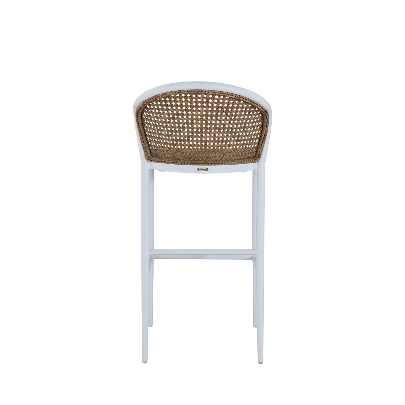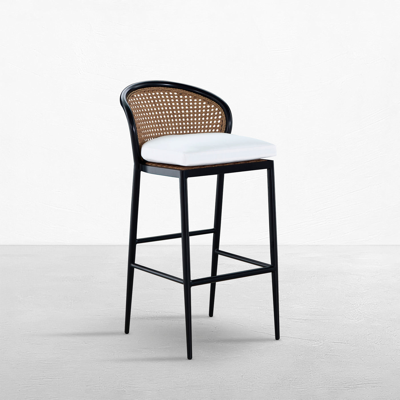 The Havana Small Barstool captures the essence of its namesake with timeless elegance and modern performance. This version maintains the same bar height as the original but features a slimmer, more compact footprint—narrower in width and shallower in depth—ideal for tighter layouts or fitting more stools along a bar. Its gently curved wrought aluminum frame recalls mid-century modern design, while the all-weather handwoven N-Dura™ resin wicker echoes the open cane weaving of old Havana. Crafted to merge traditional styling with durable materials, this stool pairs rich texture with structural strength. Lightweight and visually striking, it complements outdoor entertaining spaces with ease. Whether styled with or without a cushion, the Havana Small Barstool offers refined comfort and space-saving functionality. Please select your cushion preference using the dropdown below.