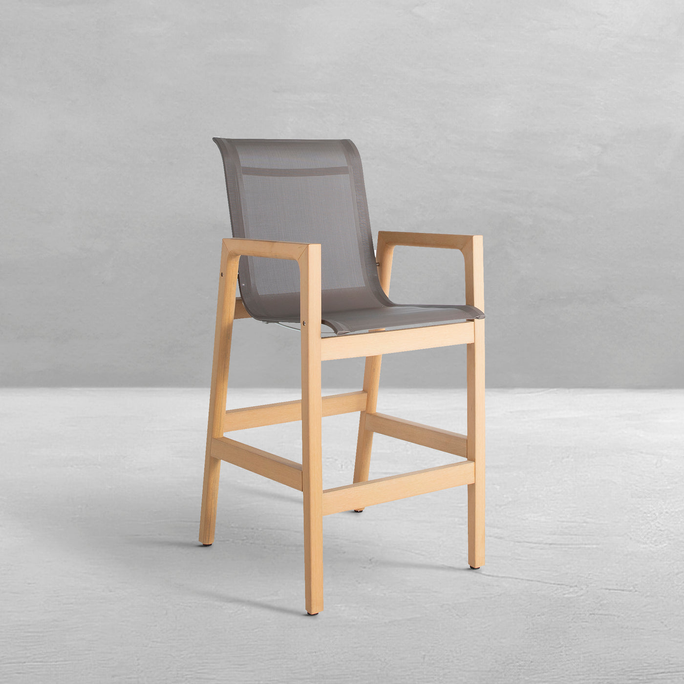The Seashore Bar Stool N-Dura™ is a celebration of both form and function, blending timeless style with resilient materials. Crafted with N-Dura™ Wood, renowned for its luxurious look akin to natural wood and outstanding durability, it’s designed to withstand diverse climates while maintaining its elegant appearance. The bar stool also features the Batyline™ Outdoor Performance Sling, celebrated for its strength and quick-drying capabilities, making it ideal for use by the water or in any outdoor oasis. This bar stool seamlessly marries robust construction with an aesthetic of relaxed sophistication.