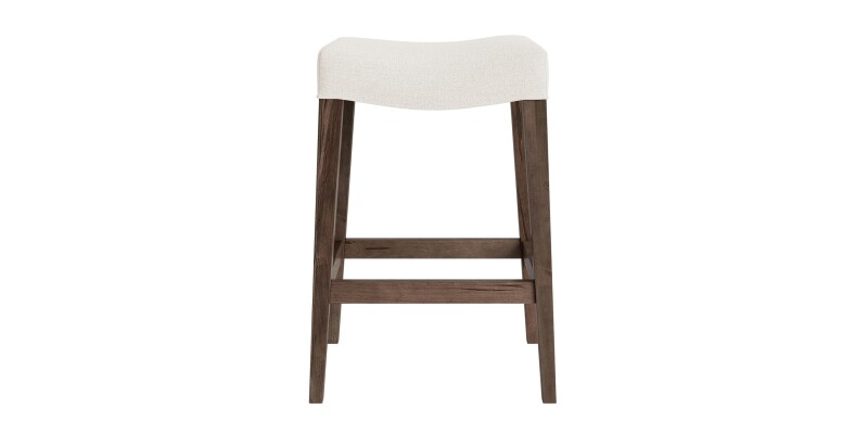 Maple saddle counter stool with a plush upholstered seat for comfortable kitchen seating. 18 in. W x 15 in. D x 26 in. H.