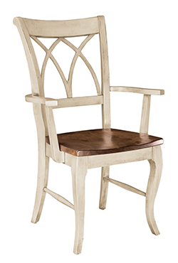 With a chair back design reminiscent of old gothic windows and curvy cabriole legs, these solid wood dining chairs can be finished in your choice and/or combination of colors. The chairs are available in both a side chair and an arm chair and pair nicely with an oval table top supported by our Norfolk pedestal to create a welcoming dining area for family and friends. 38.25″ x 24.25″ x 16.75″