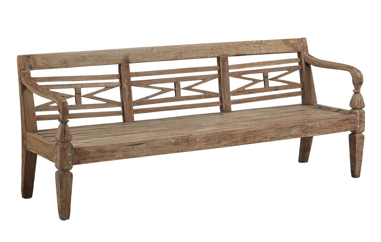 A true antique, this solid teak bench will vary in size and design. The found frames are brought in and we breathe new life into them, making them a truly unique addition for your outdoor space. If left outside without treatment, this beauty will gently grey out with time.