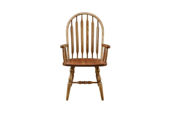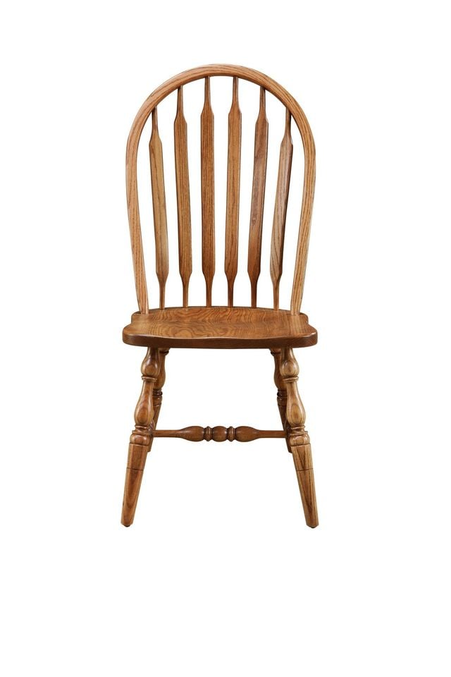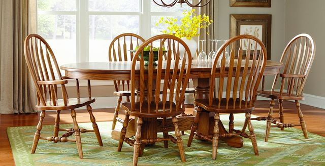 The classic Windsor styling of these dining chairs will provide that ever popular country feel to your dining room while the solid oak construction ensures comfort and durability. Turned legs and stretchers, along with the double pedestal that supports an oval top further enhance the country feel. Side and armchair styles are available and the entire set can be finished in your choice of paints and stains. Height (in.) 41.00 Width (in.) 18.50 Depth (in.) 18.00