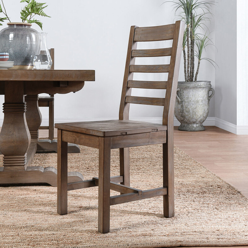 The Caleb Dining Chairs bring rustic charm and classic design to your dining space. Crafted from FSC certified reclaimed pine wood with a weathered finish, these chairs feature a ladder-back design for timeless appeal and sturdy construction. The contoured seat ensures comfort, making them perfect for everyday meals or special gatherings. The Caleb Chairs are a versatile and stylish addition to any dining room.