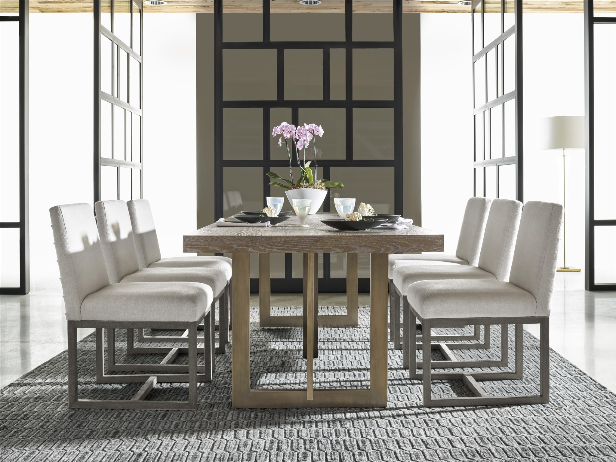 The plush upholstered seat of the Carter Side Chair rests atop its perfectly angular base, while its quaint fabric detailing adds a unique and unexpected touch.