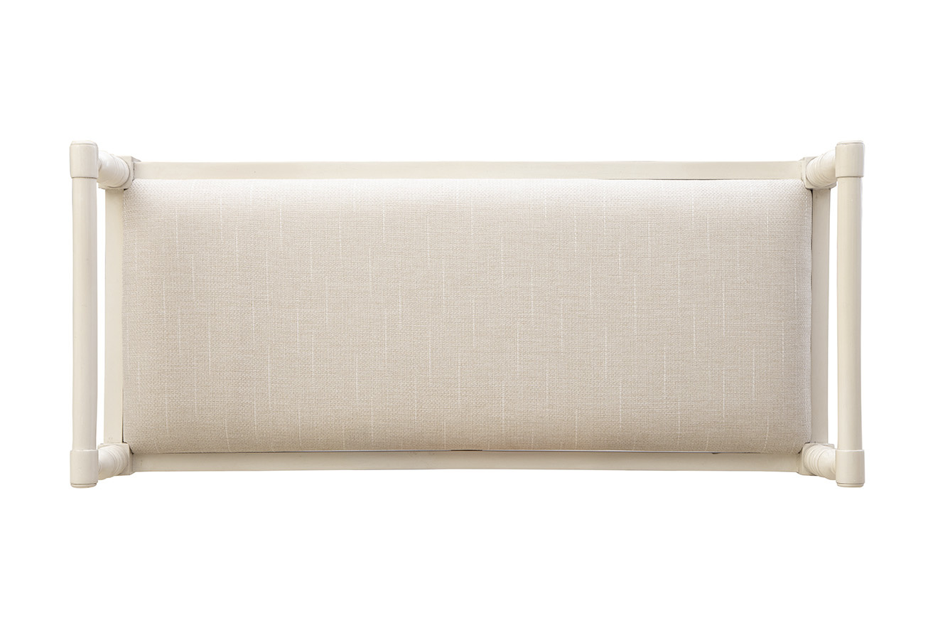 The Cream Juliet Bench blends antique-inspired design with versatile functionality. Its carved wood frame, finished in a soft cream tone, features side arms for added elegance and support. Topped with a comfortable upholstered performance linen blend cushion, this bench is perfect for the foot of a bed, a dining room table, or as extra seating in an entryway or living space.