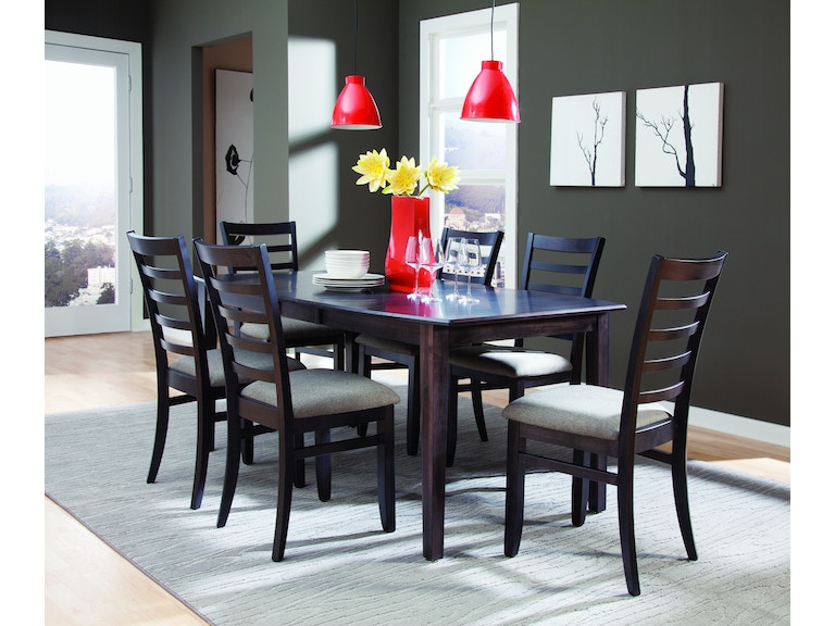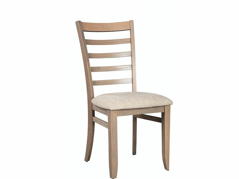 Classic ladder-back styling is made modern through the use of a rich charcoal stain on this side chair. Constructed of maple, the upholstered chair seats offer a nice contrast to the dark wood and provide comfortable seating for your guests. This chair comes standard with a wood seat, item DEX5102 and DEX5104, but is shown here with optional fabric seat. CONSTRUCTION OPTIONS Most chairs styles can be custom built as Stationary 24″ or 30″ Bar Stools, and Swivel 24″ or 30″ Bar Stools.