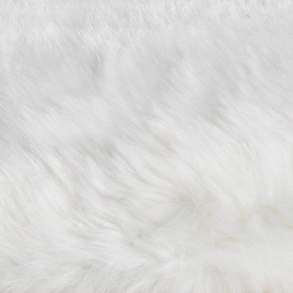 Plush faux fur in soft white atop legs of thick industrial hand forged iron finished in antiqued gold leaf.