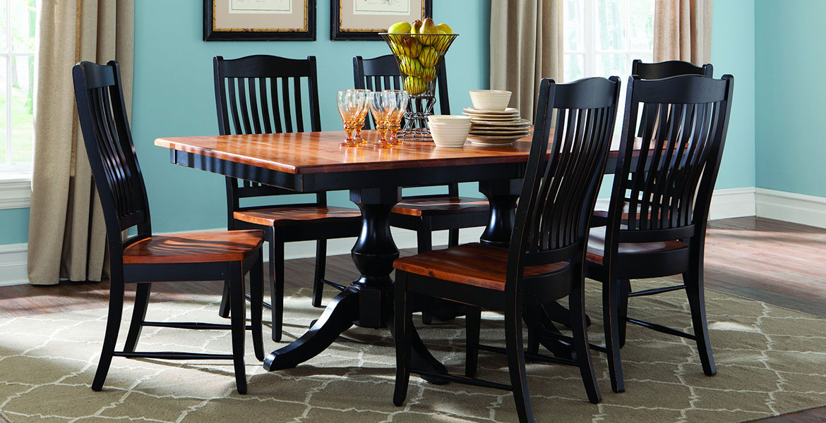 Subtle arches and curves add a feminine touch to these chairs crafted of solid rustic cherry. The classic lines make it easy to incorporate into any style décor. Shown with a two tone finish, you can choose from any of our finishes to coordinate with your home’s interior. The double pedestal dining table is the perfect partner to these substantial chairs. CONSTRUCTION OPTIONS Most chairs styles can be custom built as Stationary 24″ or 30″ Bar Stools, and Swivel 24″ or 30″ Bar Stools. The Jackson chair style is available as a backless bench in 36″, 48″ and 60″ lengths.