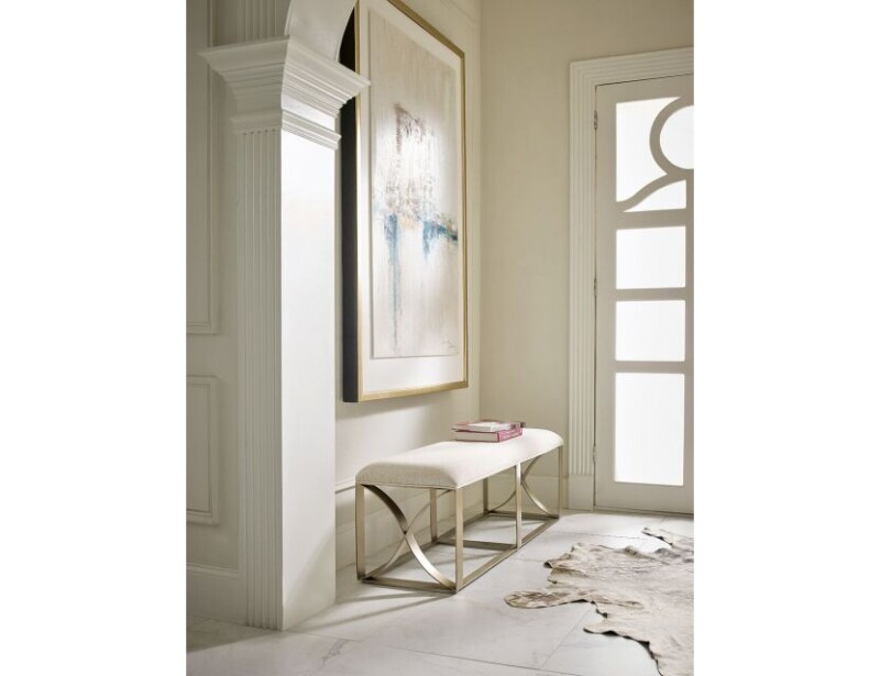 The Lenox bench features a beautiful metal base in a brassy champagne finish. The bench has an upholstered top in fabric Lennox Cream.
