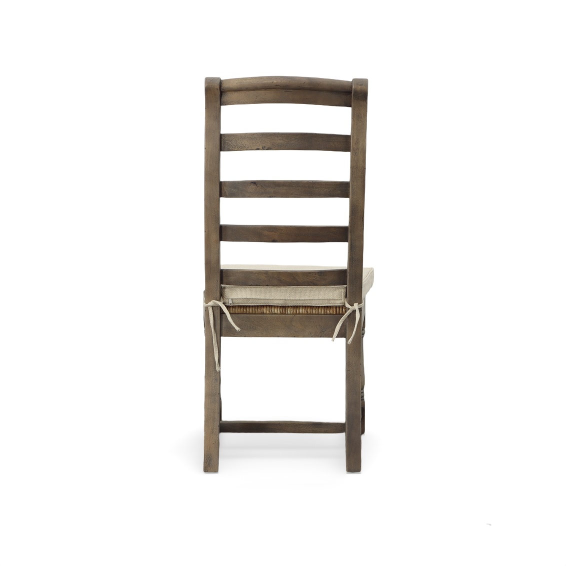 This classic ladderback chair is brought into the 21st century by the addition of a driftwood finish on the solid Mango frame. Woven rush seating is made even more comfortable with the addition of a tie-on neutral box-edge cushion.