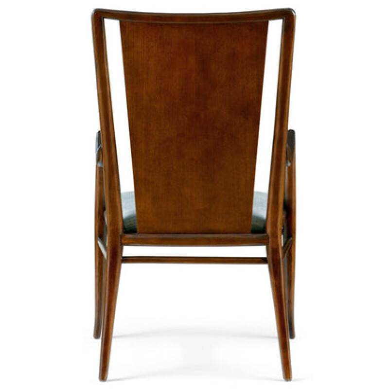 Crafted with relaxed comfort and mid-century inspiration in mind, the Martine Upholstered Back Arm Chair has slightly curved, rounded legs and an upswept back, where a broad upholstered center panel stands apart from the frame. The arms extend smoothly up from the front legs, and stretchers on all four sides sit just below the upholstered seat. Available in your choice of fabric or leather.