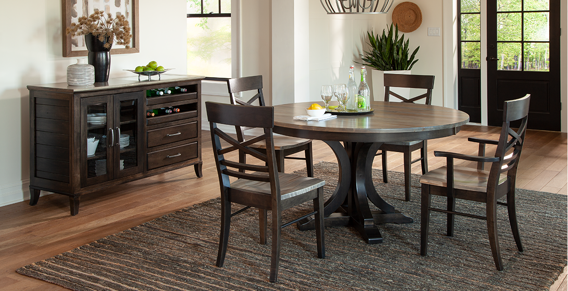 Our Milan chair is a bold new twist on the ladder-back style. The graceful curves add style and comfort. Shown in Oak with our Cider stain and Khaki fabric, the Milan chair is a perfect choice for any home. 39″ x 24.25″ x 23.25″