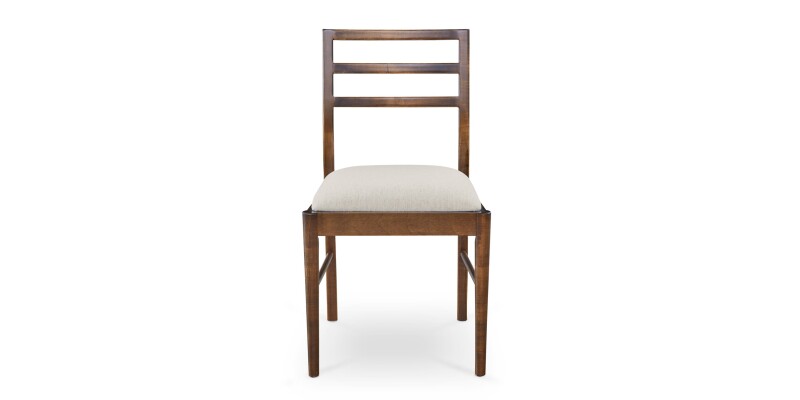 Classic ladderback dining chair handcrafted from Appalachian clear maple with an upholstered seat. Built for durability with one-piece seatback and back-leg construction; 35 in. H x 19 in. W x 22.4 in. D.