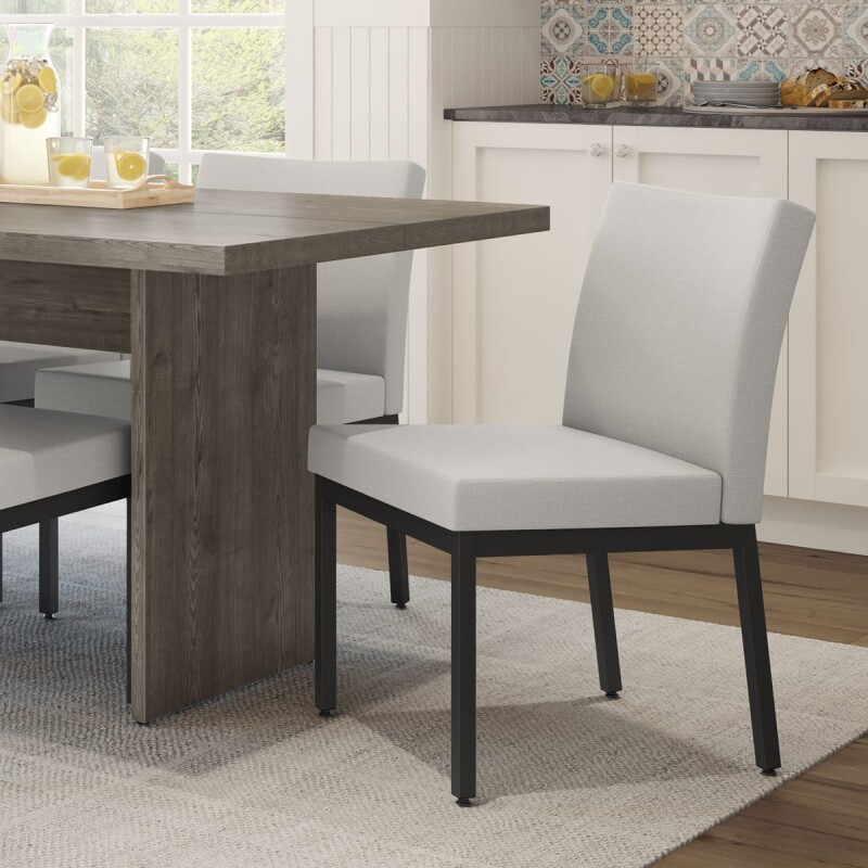 The clean lines and refined simplicity of the Perry chair enhance any modern, contemporary, or traditional dining room. The plush upholstered seat and backrest offer exceptional comfort, perfect for long, enjoyable meals with family and friends. Supported by a robust metal frame, it ensures lasting durability for years to come. Timeless and versatile, this dining chair is a great addition to any home décor style.