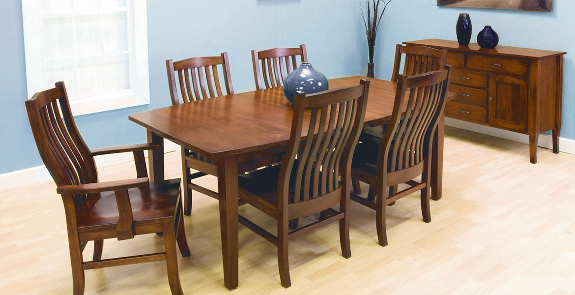 Lovely curves update a classic Shaker style in these chairs that have been styled for comfort. Constructed of maple, we have applied our Acres finish to add a rich glow to both the side and arm chairs. Select a versatile rectangular table top and our New England cabinet for storage, and you have the recipe for a dining room that will satisfy any style décor. CONSTRUCTION OPTIONS Most chairs styles can be custom built as Stationary 24″ or 30″ Bar Stools, and Swivel 24″ or 30″ Bar Stool