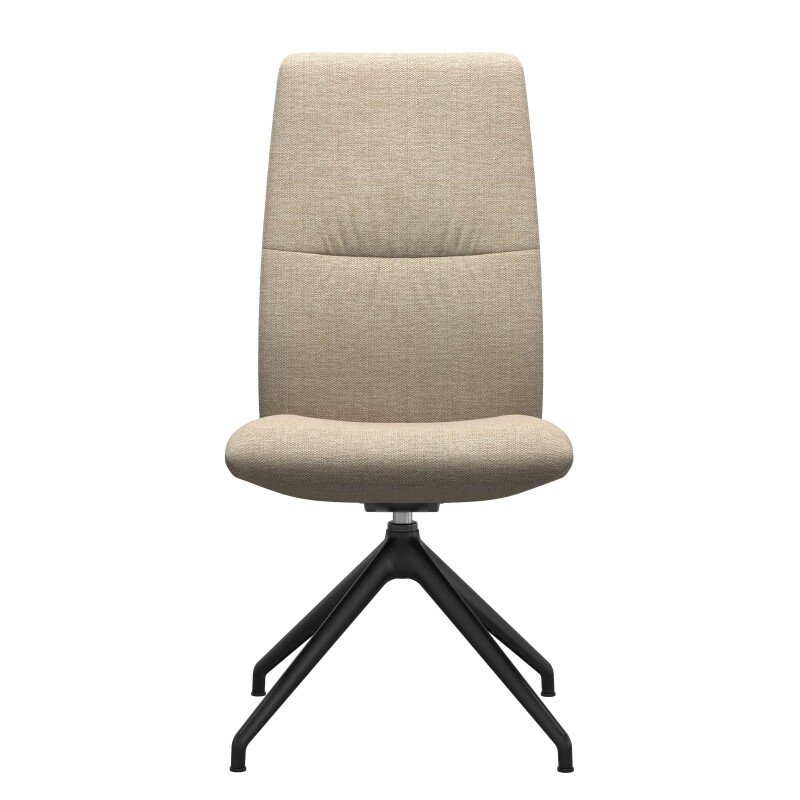 Experience true Stressless® comfort with Stressless® Mint. The dining chairs’ soft and inviting design makes them perfect for enjoyable moments around the dining table.The innovative flexibility in the seat and back allows the dining chair to follow the slightest movement of the body. This allows you to enjoy the meal even longer. Choose between high and low back, with or without armrests. Add your personal touch to your dining chairs by designing them just the way you want. Choose from the Stressless® range of materials, colors and all our dining leg types in wood or steel.