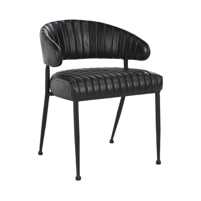 The Umbria Dining Chair features rich top-grain leather with sleek vertical channeling, paired with sturdy iron legs. Its tasteful design exudes understated luxury, making it the perfect addition to any dining space. With its refined style and comfort, this chair enhances both modern and traditional interiors with effortless charm.