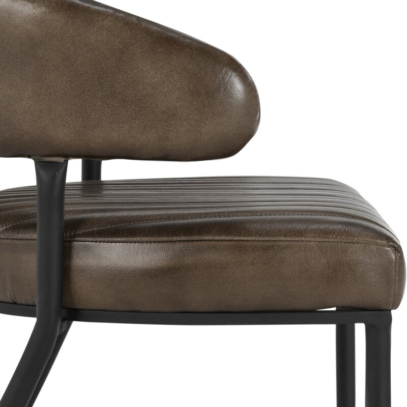 The Umbria Dining Chair features rich top-grain leather with sleek vertical channeling, paired with sturdy iron legs. Its tasteful design exudes understated luxury, making it the perfect addition to any dining space. With its refined style and comfort, this chair enhances both modern and traditional interiors with effortless charm.