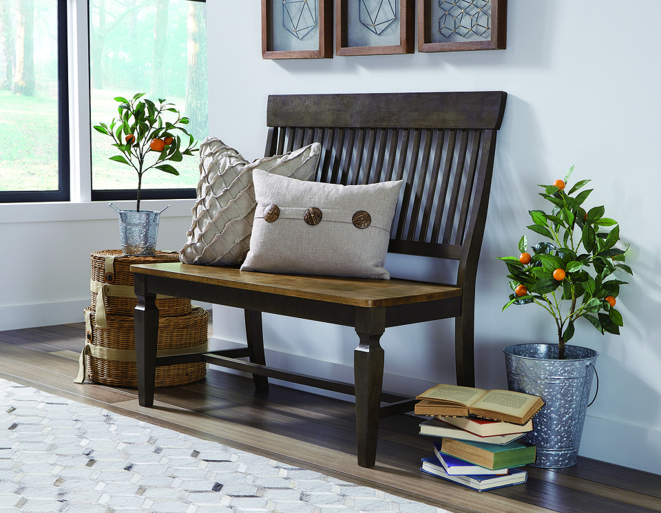Vista Collection Slat Back Bench in Hickory & Coal