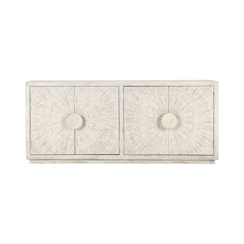 The Apollo Mango Wood Buffet is a stunning blend of elegance and craftsmanship. Made from solid mango wood, its textured design features intricate carved detailing and a light, natural finish that adds warmth to any room. With ample storage behind its uniquely styled doors, this buffet combines functionality with sophisticated style, making it perfect for dining rooms or living spaces.