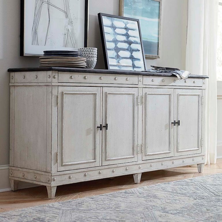 As an ideal companion to your dining table, the Bella 72″ Buffet is at your service for every meal. The generous stone top holds everything you need tableside, from drinks to napkins to serving dishes. Four doors with worn pewter bar pulls conceal gracious storage areas to keep table linens, serving pieces, and more, all within easy reach of the table. The lasting appeal of this hard-working buffet comes through in the old world details of its construction, highlighted by an Aged Whitestone three-step finish.