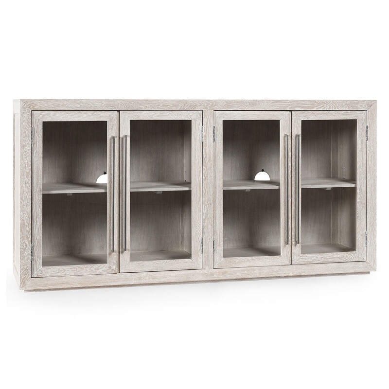The Bradley Collection exudes classic charm with the strength of solid oak and a water-based finish that highlights its natural grain. Featuring four soft-close doors with antique brass hardware, it offers ample storage and floating shelves for added versatility. This design delivers refined elegance and timeless functionality, making it a perfect addition to any space.