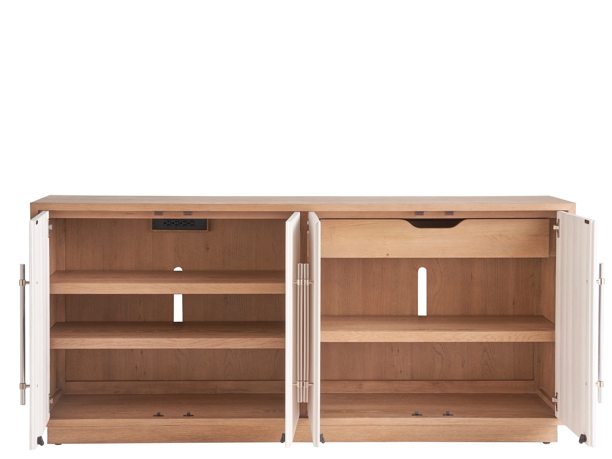 A beautiful blending of texture and hue, the Camden Credenza offers a seamless elegance with abundant storage space, a two-tone finish and dreamy acrylic handles.