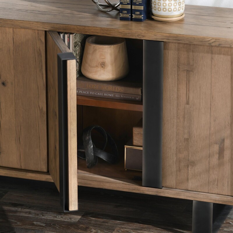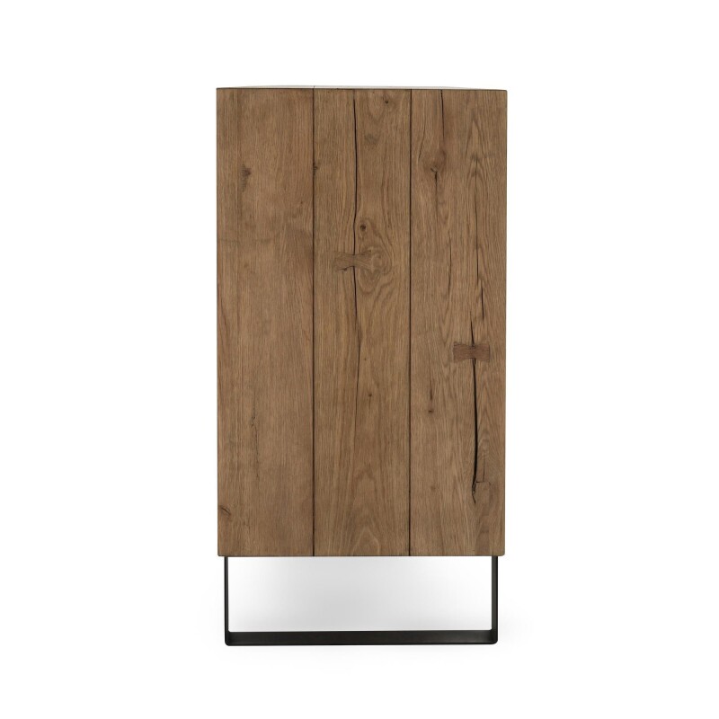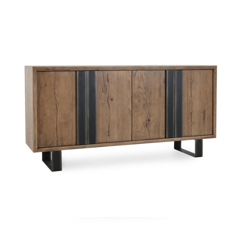The Danica Reclaimed Buffet brings a bold, modern presence to your dining space. Expertly crafted from FSC-certified reclaimed oak, it embodies sustainable sophistication. Its standout design features clean-lined doors accented by a dramatic black band, blending organic texture with contemporary flair. With ample interior storage and sturdy metal legs, this buffet is both stylish and functional — a versatile, eco-conscious choice for today’s refined interiors.