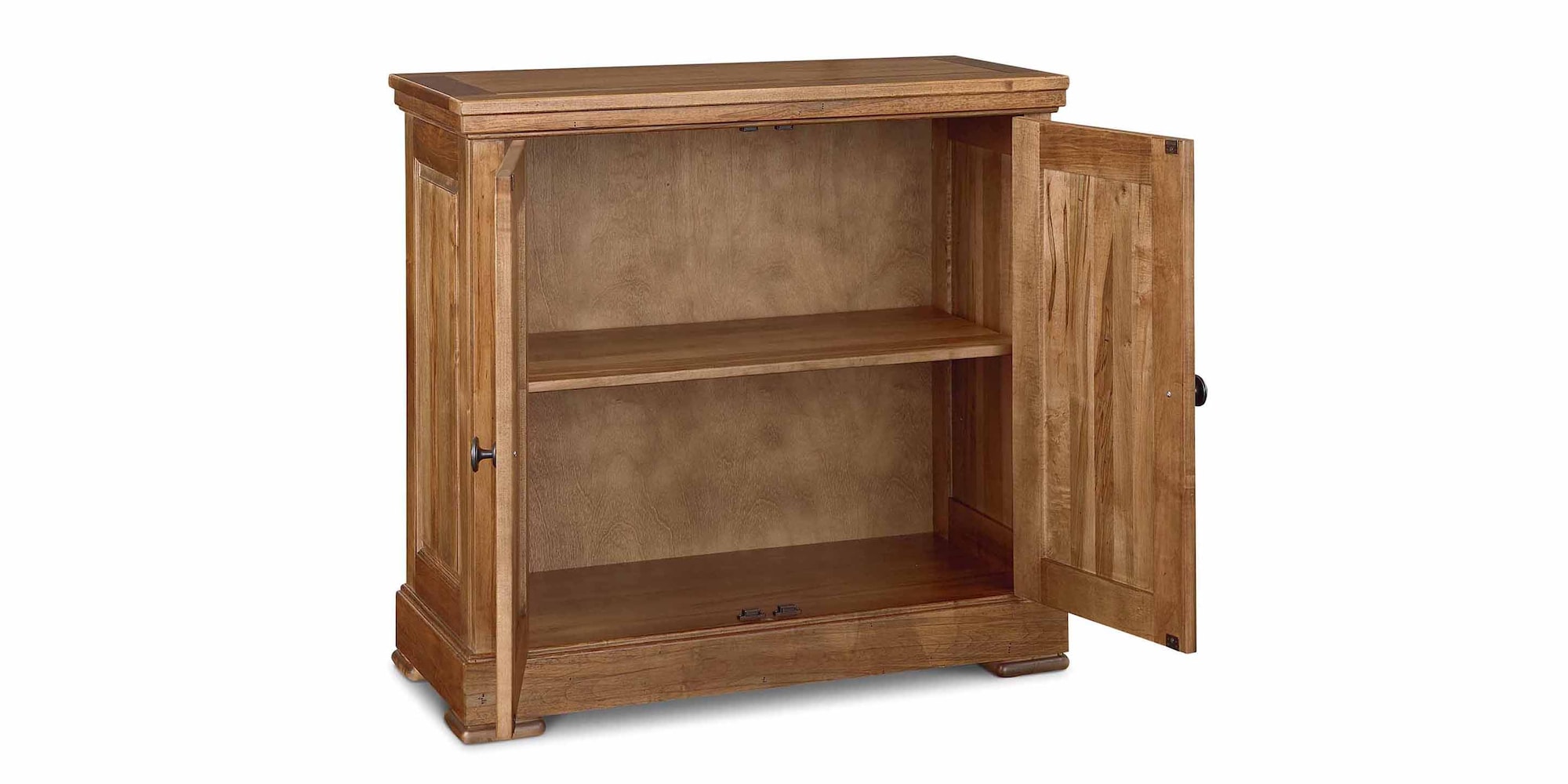Lean on the handsome BenchMade Hawkins Huntboard for fine and refined service. It’s the perfect companion in hospitality as you entertain family and friends. Or you can use it to store everything from serving ware to electronics. Bassett artisans craft each huntboard by hand from solid red-leaf maple, allowing you and your guests to appreciate the natural beauty of the wood. Four solid wood doors open by way of antique pewter hardware to access ample storage that includes two adjustable wood shelves.