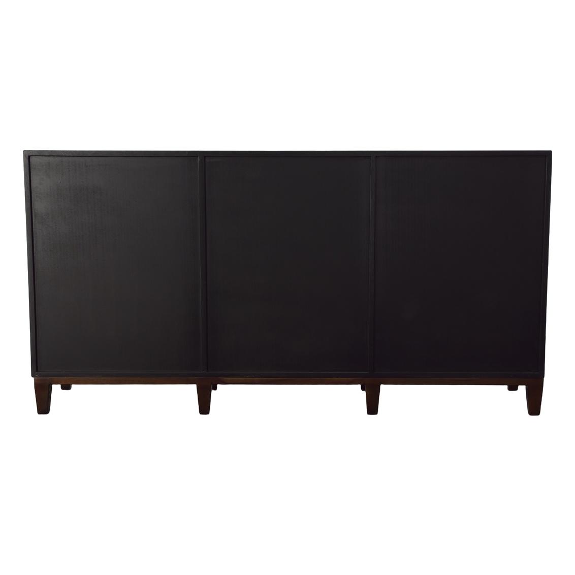**Final Sale – All Items are sold as is, no returns unless damaged upon receipt. A touch of European design influence is bestowed upon this refined sideboard by the application of neutral shagreen to the door fronts. The uniquely textured surface of the doors is enlivened by the softly gleaming vertical pulls, and contrasts nicely with the dark pine and oak frame. Behind each door is a shelf which allows for organized storage.