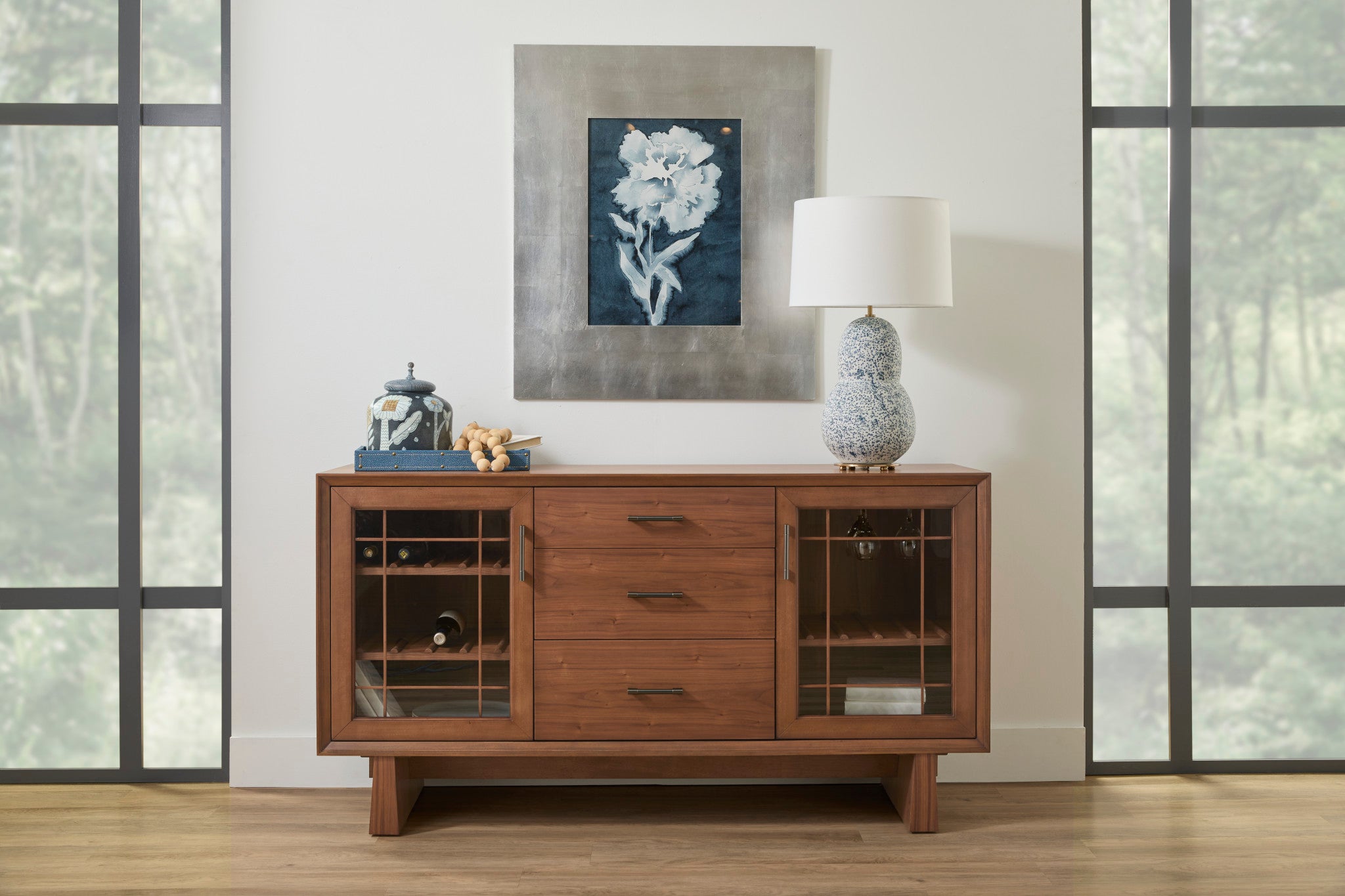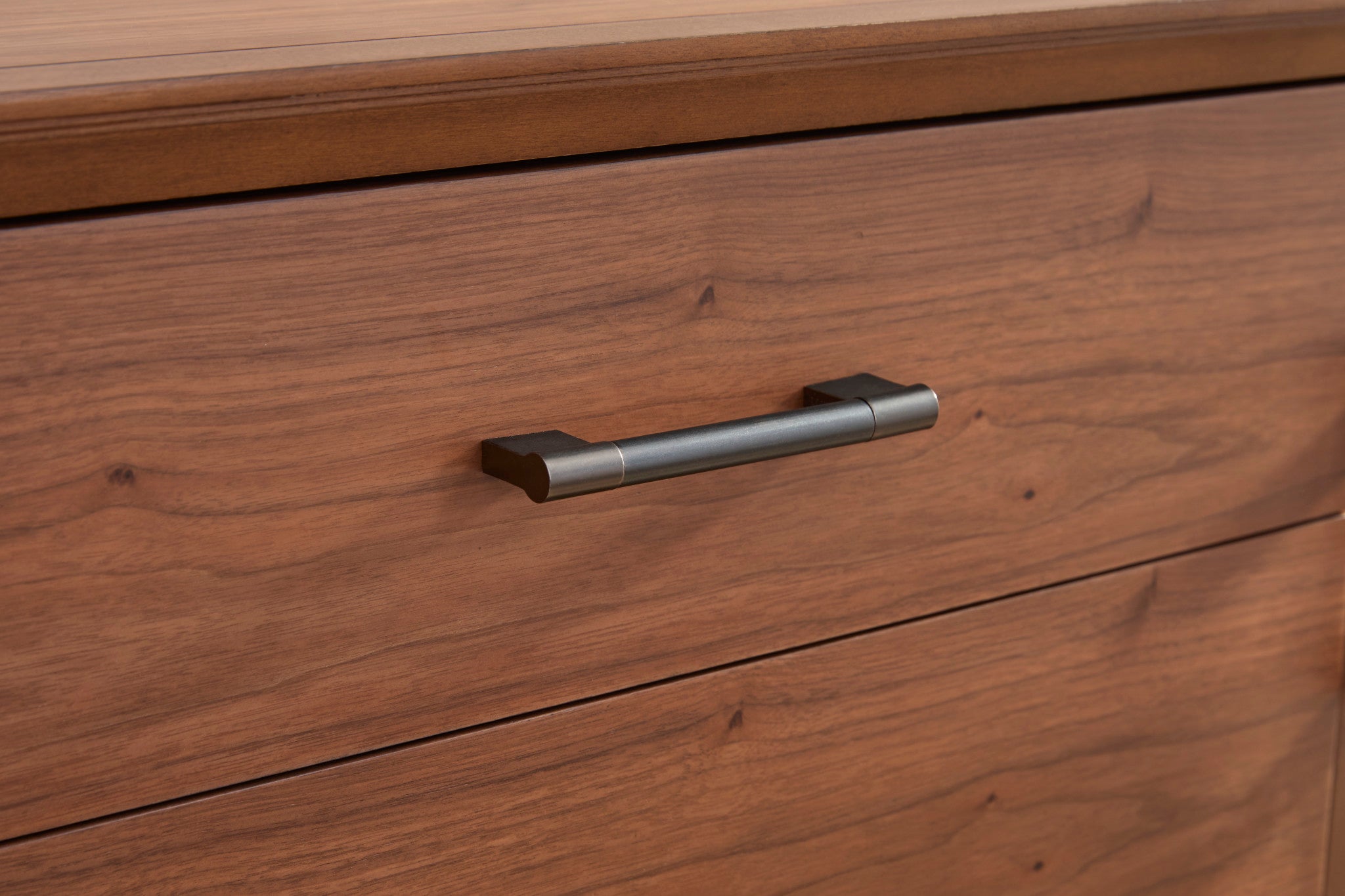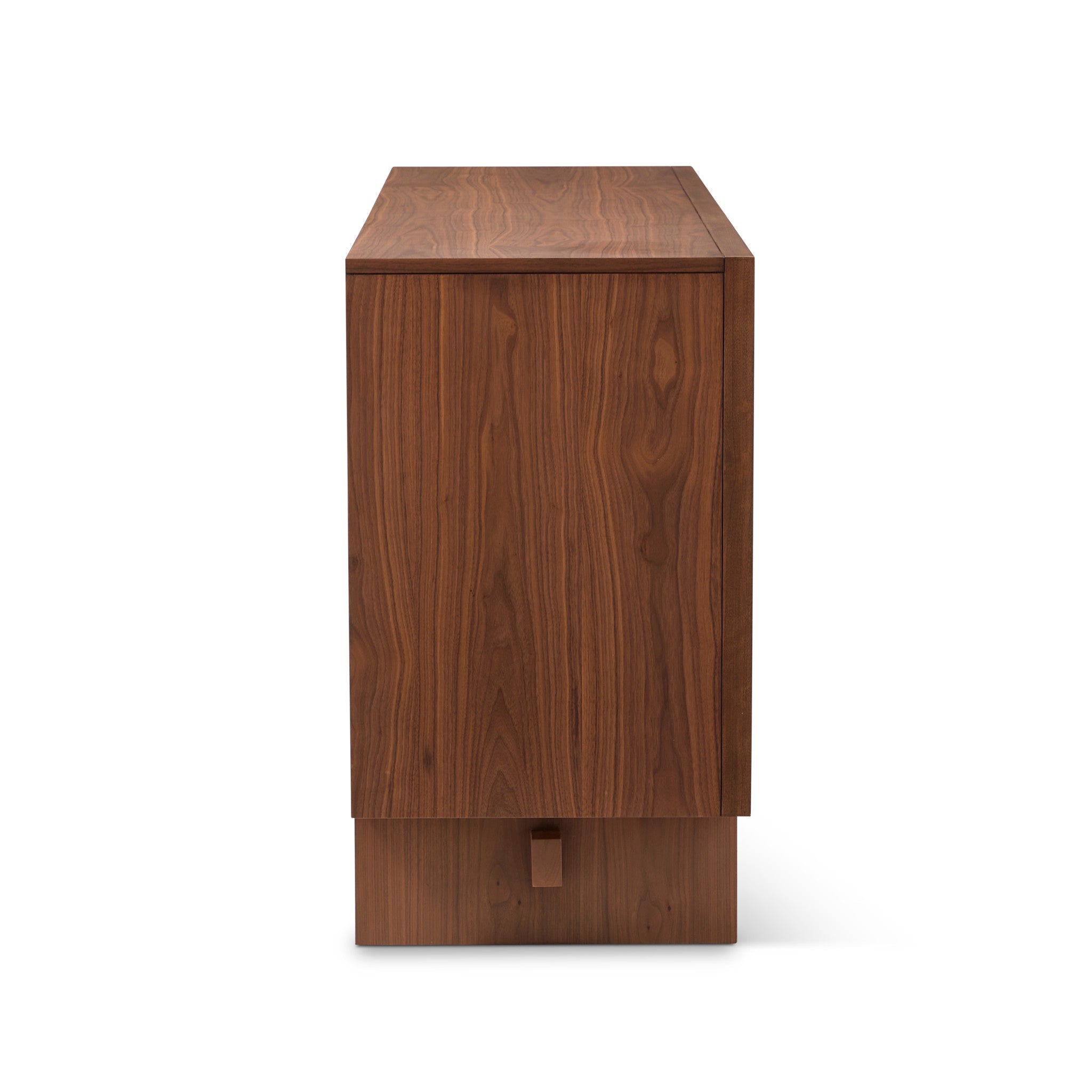 Meet the new crown jewel of your dining room. Our Lincoln buffet takes inspiration from influential architect Frank Lloyd Wright, to bring timeless style to the present. Elegance and utility come together in this piece with ample space to store everything you need for your next dinner party. Containing two storage cabinets with adjustable shelves and three drawers, the Lincoln buffet makes dining organization a breeze. Embellished with gleaming gunmetal hardware, the Lincoln is show-stopping from a distance, with details to make you look closer.