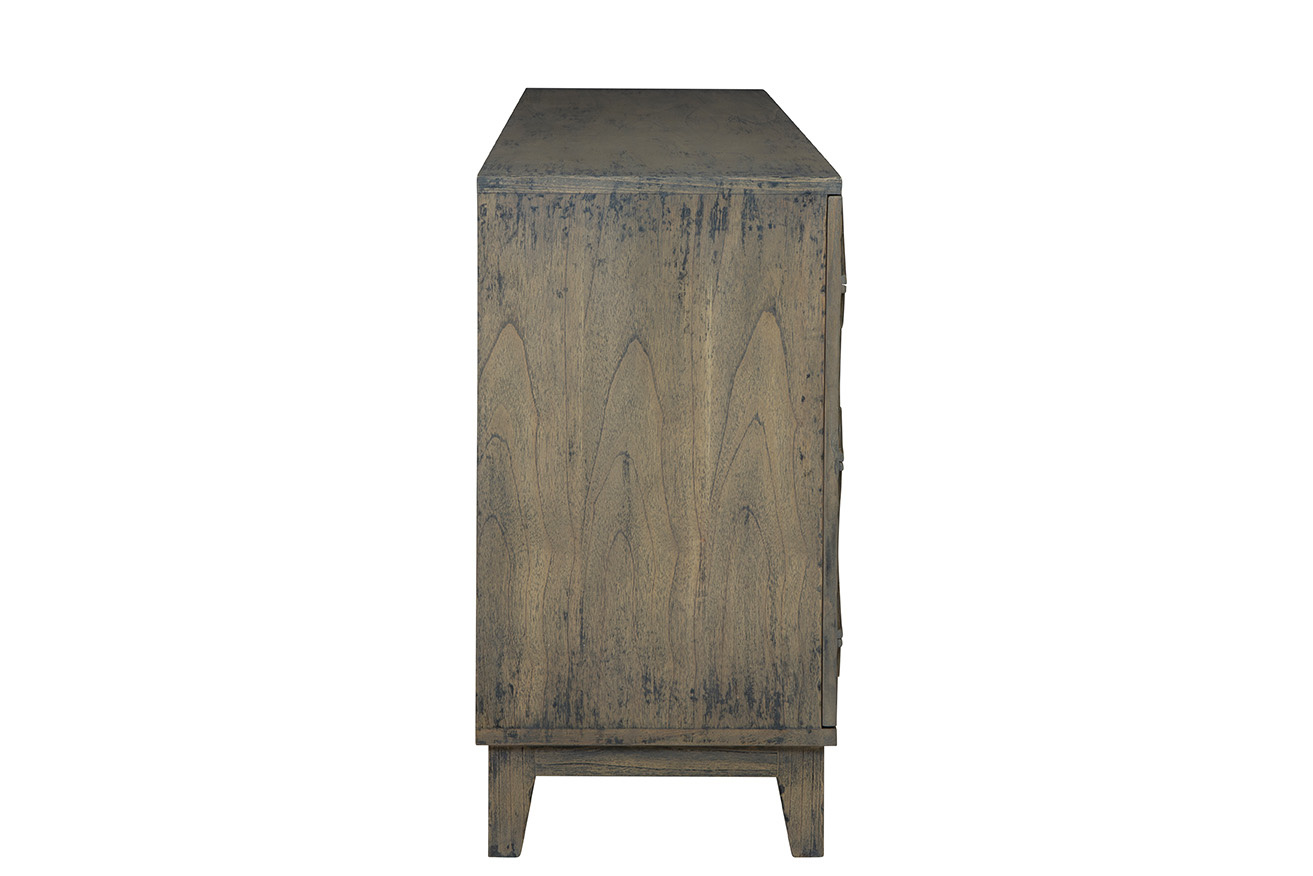 Introducing the Pearl Sideboard, where modern convenience meets antique charm! This spacious sideboard is a storage powerhouse with a nod to the past in its exterior design. Crafted from sturdy solid wood, it boasts a modern shape peppered with a distinctive distressed brownish-grey finish, adding a touch of character and history to your space. The interior is all about sleek storage solutions, providing ample space for all your organizational needs. But it’s the exterior that steals the show, with intricate door carvings that evoke a sense of old-world elegance.