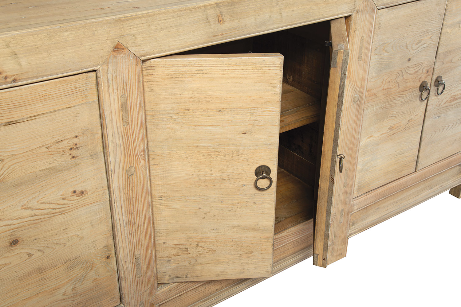 The simplicity and bare bones design of this sideboard are a great part of the strong statement it will make in your home. Stripped of applied ornamentation or finish, the beauty of the solid wood construction is allowed to shine forth, making this piece sure to be the focal point of your interior.