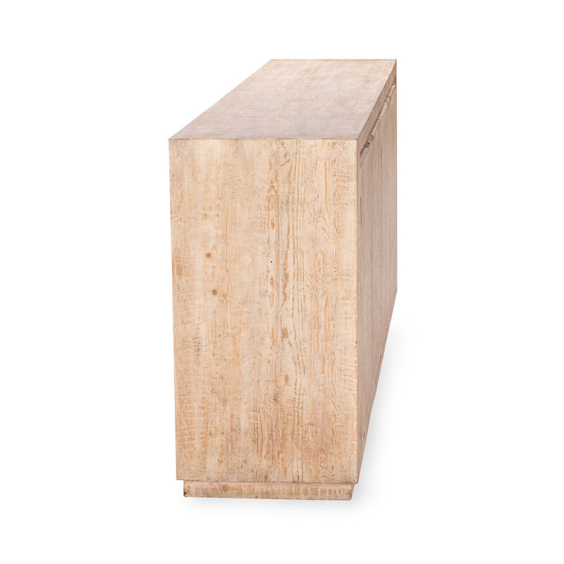 The Wolden Buffet highlights simplicity with reclaimed pine, emphasizing its natural charm. Its sleek, minimalist design brings a quietly exquisite aesthetic in to your space, reflecting eco-conscious craftsmanship with understated elegance.