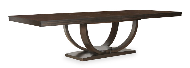 Our bestselling Omni dining table is a majestic “statement table” for the dining room. This table is composed of a comforting balance of curves and angles. A rectangular platform topped with a circular centerpiece from which radiate four graceful “arcs” flowing upward to support the tabletop. Rendered here in maple, this wood species is ideal for stains and painted finishes allowing for a more casualized and informal dining room option.