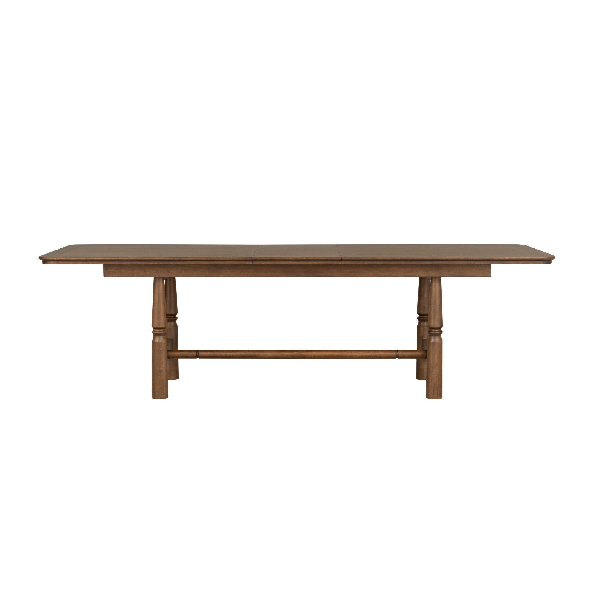 The Azalea rectangular dining table is rooted in new traditional style, featuring classic proportions and turned, reverse-flared legs that create a strong, timeless foundation with a trestle base for gathering. Crafted from rubberwood solids with walnut veneers, the table is finished in a rich Legacy Walnut tone that brings warmth and depth to the dining space. Designed with flexibility in mind, a self-storing leaf allows the table to expand easily, offering comfortable seating for both everyday meals and larger occasions while maintaining the collection’s refined, enduring appeal.