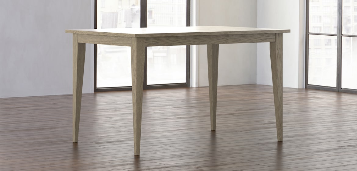 From slow Sunday mornings to laughter-filled nights, the BenchMade Conroy dining table elevates the everyday. Markedly contemporary, Conroy’s clean-lined silhouette complements the 1″ high top and streamlined legs. Crafted with heart by hand in solid white oak, you can choose from finishes ranging from greys and whites to deep browns that are lightly distressed. Finish choices available in store. 40″W x 60″D x 36″H. Available in standard height. Also available in three sizes: 60″, 78″ and 96″.