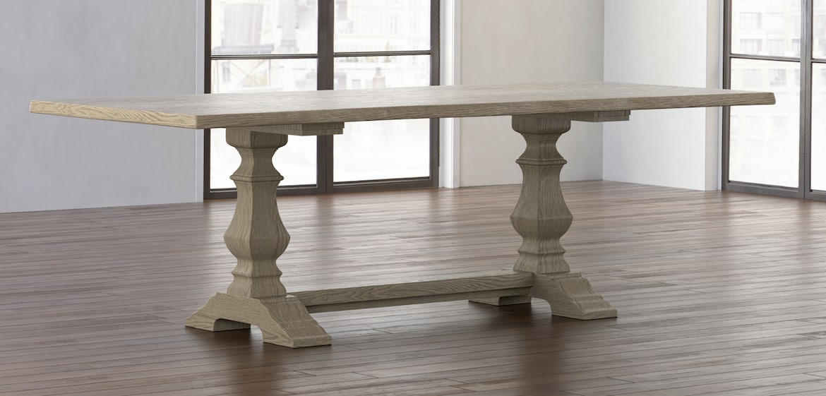 Harvest by BenchMade has a bolder proportion and timeless, relaxed elegance that naturally brings people together. Its 1 3/4″ thick live edge table top has a remarkably unique shape, curvature, and variation, all thanks to nature. Artisans create each table with heart by hand from sustainable solid white Oak allowing the beauty of the materials to come through. Baluster style pedestals are joined by a steadying stretcher rail for support and a real sense of permanence. Choose from finishes ranging from greys and whites to deep browns with light distressing. Finish choices available in store.
