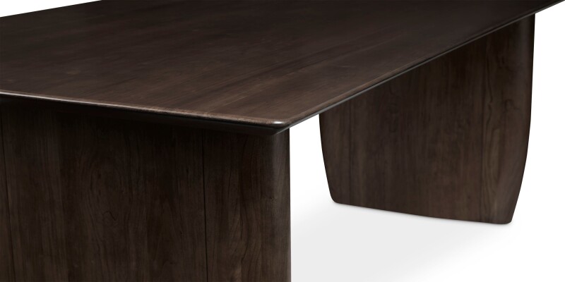 The Dresden rectangle dining table centers your dining area with a simply beautiful, Scandinavian-like style. Handcrafted in cherry hardwood, the solid wood top is 2″ thick. The beauty of the fine cherry wood grain is also emphasized in the clean-lined, gently rounded base. The natural warm blonde of the cherry wood optimizes the feel of elegance, and can also be enhanced by our darker finish options. Available in two sizes.