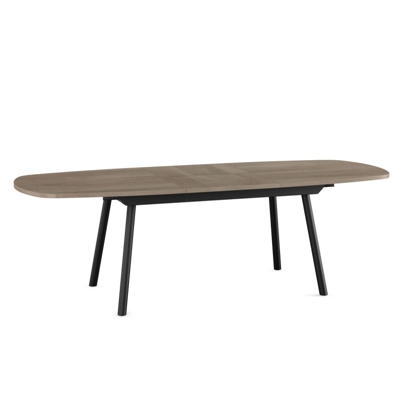 The Gibson extendable table seamlessly blends modern aesthetics with practical functionality, making it an ideal centerpiece for any contemporary dining space. Crafted with a sleek birch wood veneer tabletop and elegantly rounded edges, it also boasts a convenient butterfly leaf mechanism that allows for swift extension or retraction with minimal effort, making it a breeze for a single person to adjust as needed. With its fully extended size, it can comfortably accommodate up to 8 people, catering to both lively gatherings and cozy family meals alike.