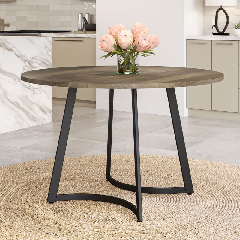The Joelle dining table can seat up to 4 people for a good shared meal. Its 48” solid birch wood top will add warmth to your decor for years to come. Want to stand out from the crowd? The curved metal base gives this dining table a unique touch of movement, charm and uniqueness to your home.