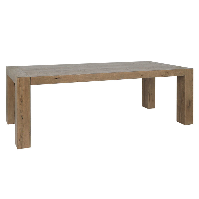 The Kingston Dining Table is a masterpiece of sustainable elegance. Crafted from FSC-certified reclaimed oak, it features bold block legs that emphasize its sturdy design and timeless appeal. Showcasing the natural beauty of the wood’s grain and texture, this table is perfect for hosting gatherings, adding eco-conscious sophistication to any dining space.