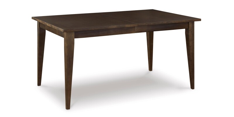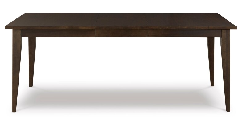 Rectangular extendable dining table with tapered legs and a removable 18 in. leaf that seats 6–8, artisan crafted in the USA.