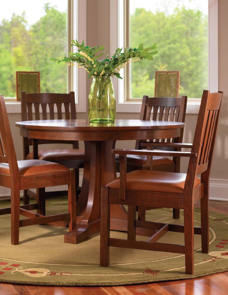 From the original April 1989 reissued Mission Collection, this pedestal table acts as gracious host, generously accommodating two or three 15” aproned leaves for guests. Available in solid oak or cherry.