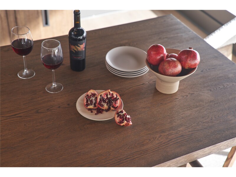 The Eden Dining Table captures the essence of mid-century design with its geometric angles and clean lines, all finished in a warm medium brown. Its subtle wooden detailing adds a layer of sophistication, making this table a timeless centerpiece that effortlessly marries retro flair with modern simplicity.