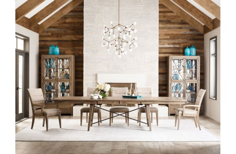 The Laredo Dining Table is the flexible centerpiece of the Modern Forge collection dining room. With two 20″ extension leaves it can easily seat four, six, eight, or ten. And the mechanized table extension makes it a breeze for one person to add or remove leaves without moving the base. The Laredo also features Kincaid Furniture’s KinGuard performance dining table finish. This added feature helps to protect the table top from normal food and drink spills.