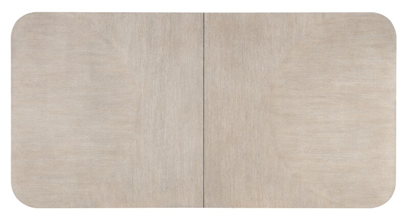 Inspired by decades of design movements with an unmistakably modern aesthetic that transcends time, the Modern Mood Leg Dining Table is a striking, softly sophisticated profile. Featuring a rounded table apron and corners, matched veneers on the top and metal banding accents on the legs in a warm pewter finish, it is crafted of Quartered Oak Veneers in a Diamond Finish with crystal-like alabaster hues. With one 24-inch leaf, the table extends up to 110 inches long.