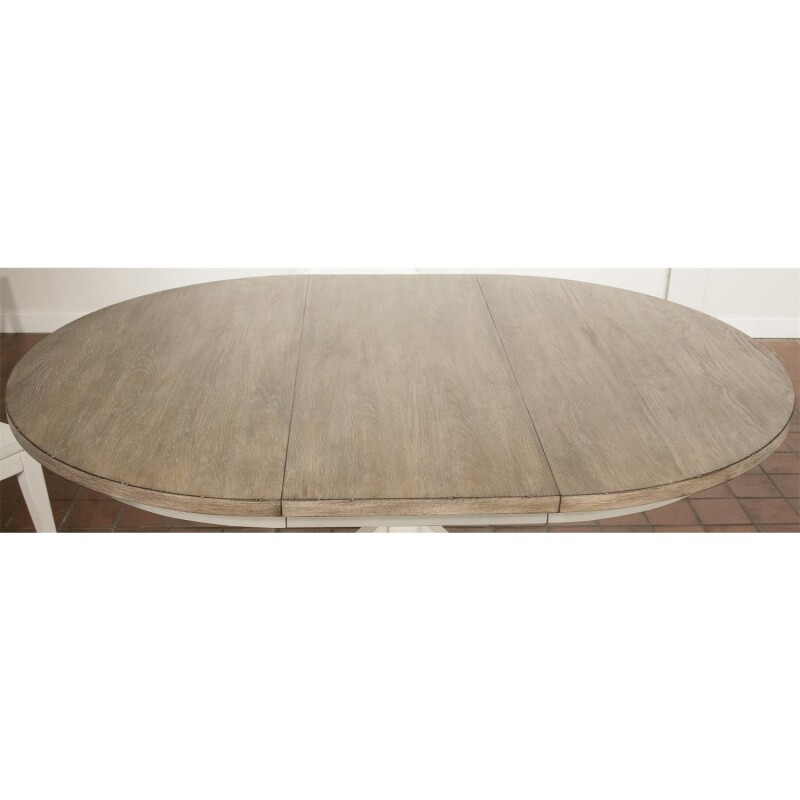 Round Dining Table-Top | 48″ x 48″ top extends to 48″ x 66″ with one 18″ leaf inserted |