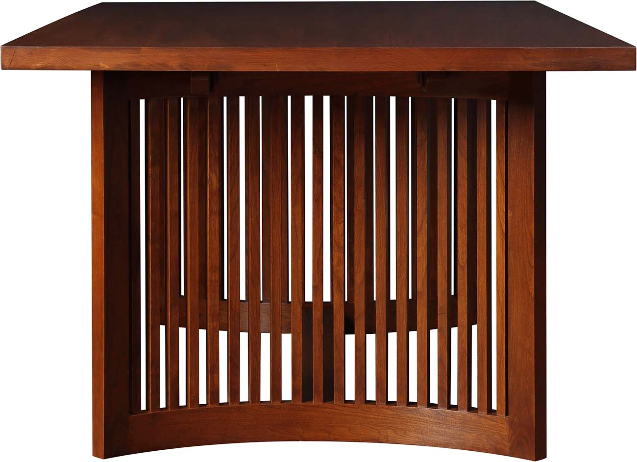 With clean precise lines resting on two elegantly arched trestles composed of fine spindles, the Park Slope dining table has a distinctly modern feel. Spindles are arranged to provide a new perspective at every turn. Light and shadow change the way the table looks, giving way to nature’s genius geometry at every angle. The 78″ table extends to 114″ with two 18″ leaves for larger gatherings. Available in solid quartersawn oak or cherry